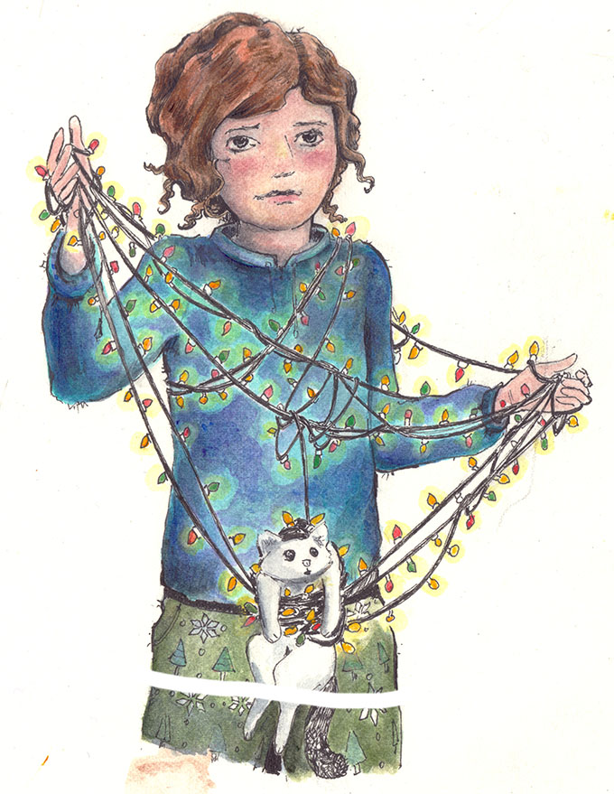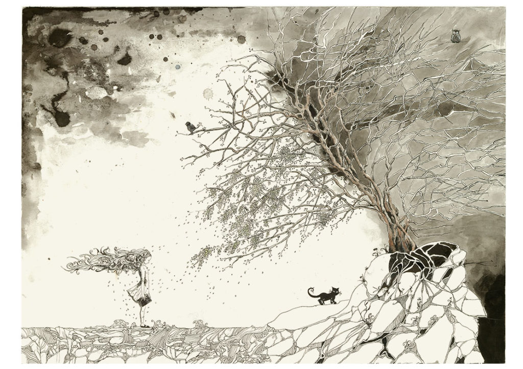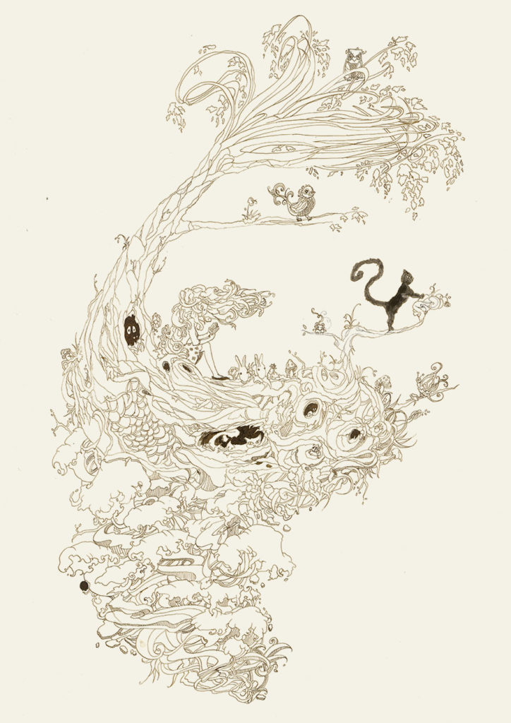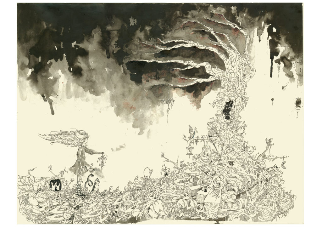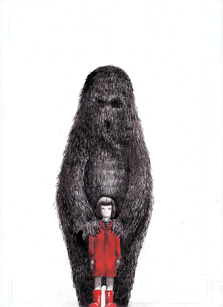 Virginia is a strange girl, she has monsters inside. She discovers her internal world by drawing and making friends with the ones that scare her. Or maybe they’re not that scary after all. Watercolor, pencil and ink on watercolor paper.