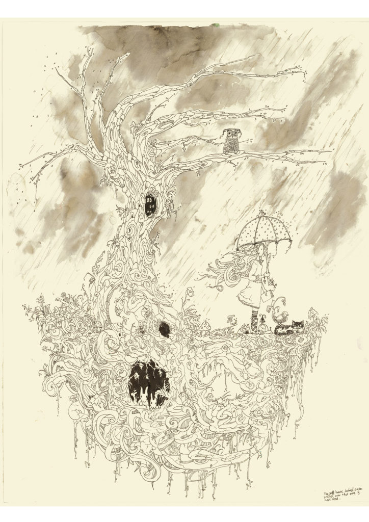 A series of drawings about an island of memories, a drifting haven of tranquility and peace. Drawn in Indonesian ink on cotton paper.