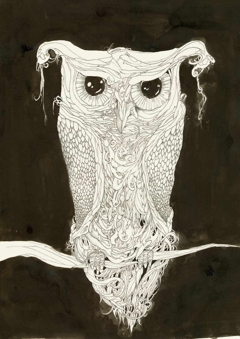 Ink on paper, just an owl so I could say Owls your day!